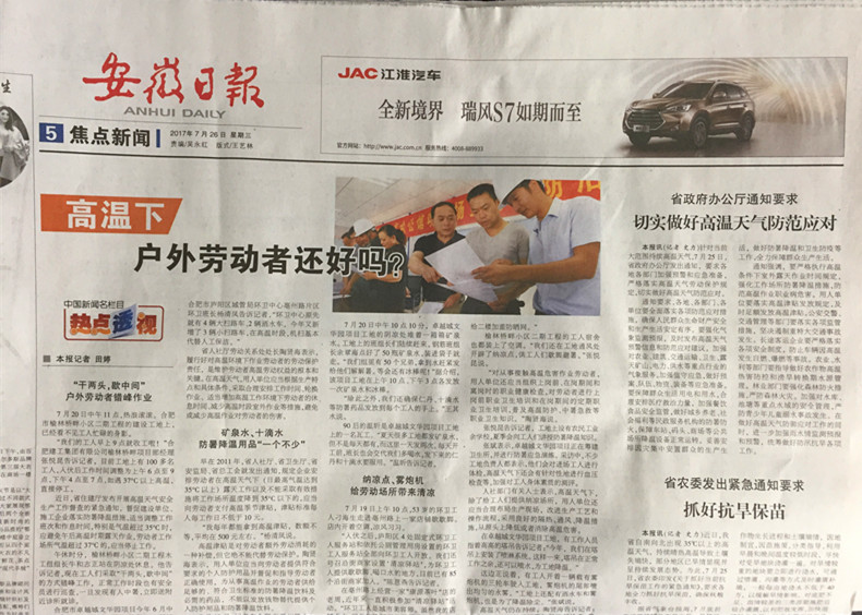 安徽日?qǐng)?bào)、新華網(wǎng)等——高溫下,戶外勞動(dòng)者還好嗎?