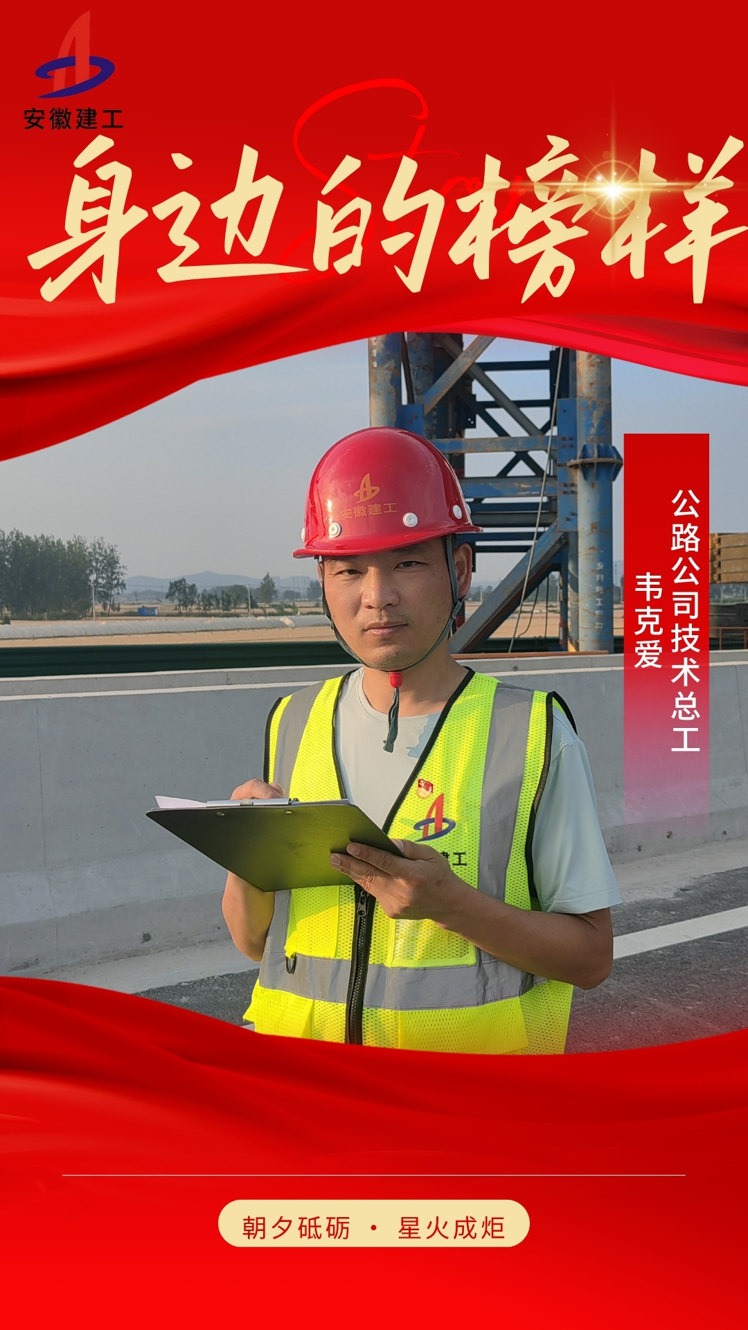 在城市建設(shè)的前沿陣地上,有一位用腳步丈量初心的共產(chǎn)黨員。他以建筑工地為人生舞臺,將責任擔當化作前行的風(fēng)帆;以“逢山開路、遇水架橋”的鐵軍氣魄,在鋼筋水泥的交響曲中譜寫新時代建設(shè)者的奮斗史詩;以精益求精的工匠精神,鐫刻時代建設(shè)的精品豐碑,他就是公路公司技術(shù)總工韋克愛。