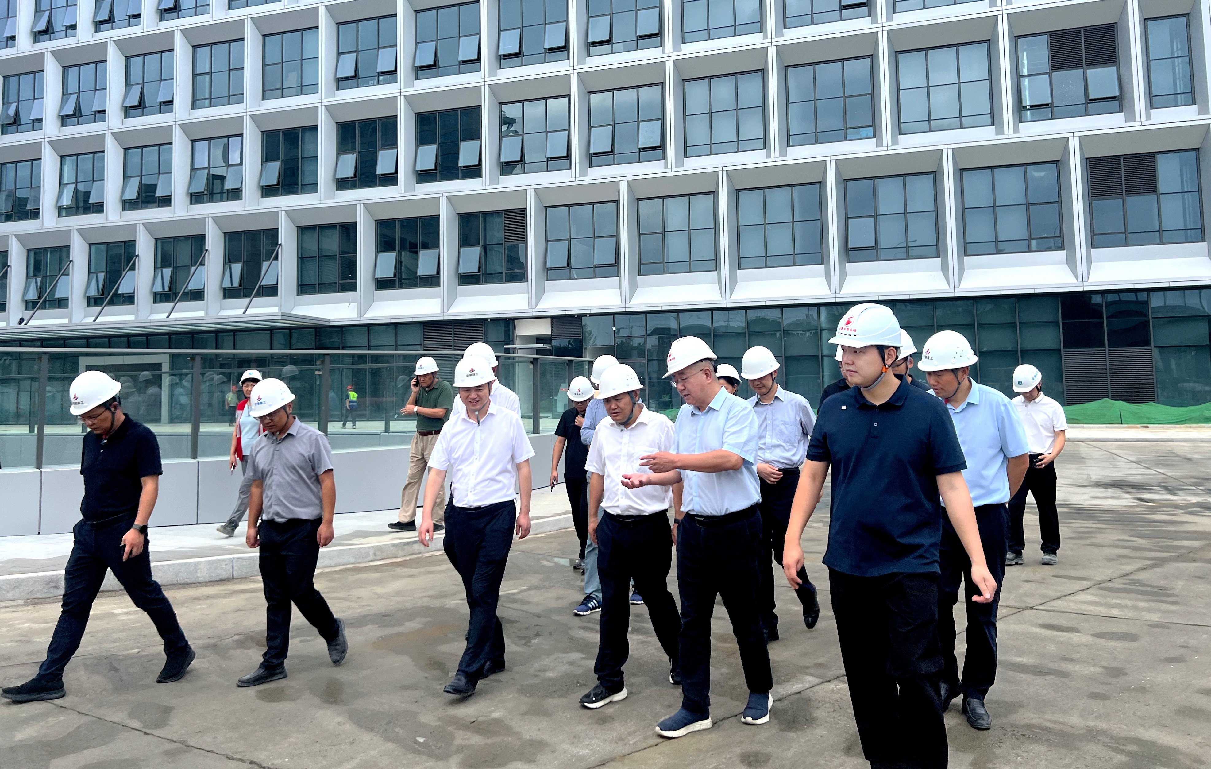 原省立醫(yī)院南區(qū)黨委書記、中國科學院臨床研究醫(yī)院建設項目條件建設組組長魯朝暉,合肥市重點工程建設管理局黨組成員、副局長鄭浩,合肥市濱投公司黨委副書記、董事、總經(jīng)理胡文亮,合肥濱湖科學城工程建設處處長張超、副處長張應奎,公司黨委書記、董事長傅宏林等參加調研。