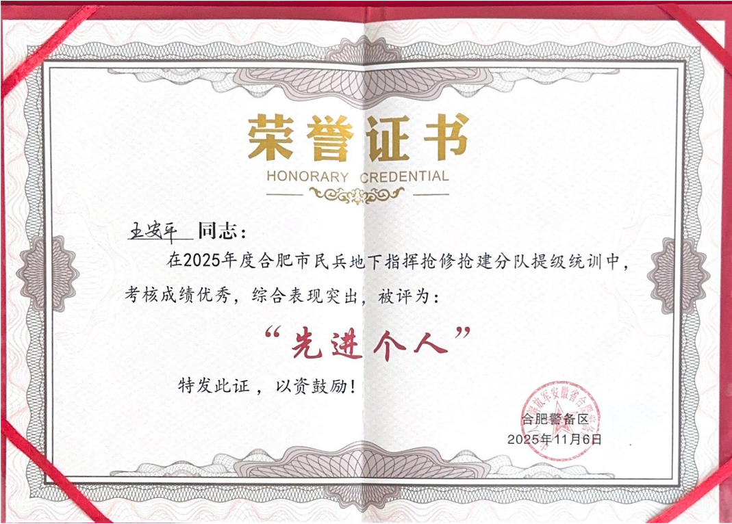 近日,建工三建第二建筑公司積極響應(yīng)號(hào)召,精心選派11名員工參加合肥市肥西縣人民武裝部組織的為期7天民兵封閉式集訓(xùn)。其中,王安平、鄭常兩位同志憑借突出的綜合表現(xiàn),獲合肥警備區(qū)授予“先進(jìn)個(gè)人”榮譽(yù),充分展現(xiàn)了新時(shí)代國(guó)企職工的良好精神風(fēng)貌與過(guò)硬綜合素質(zhì)。