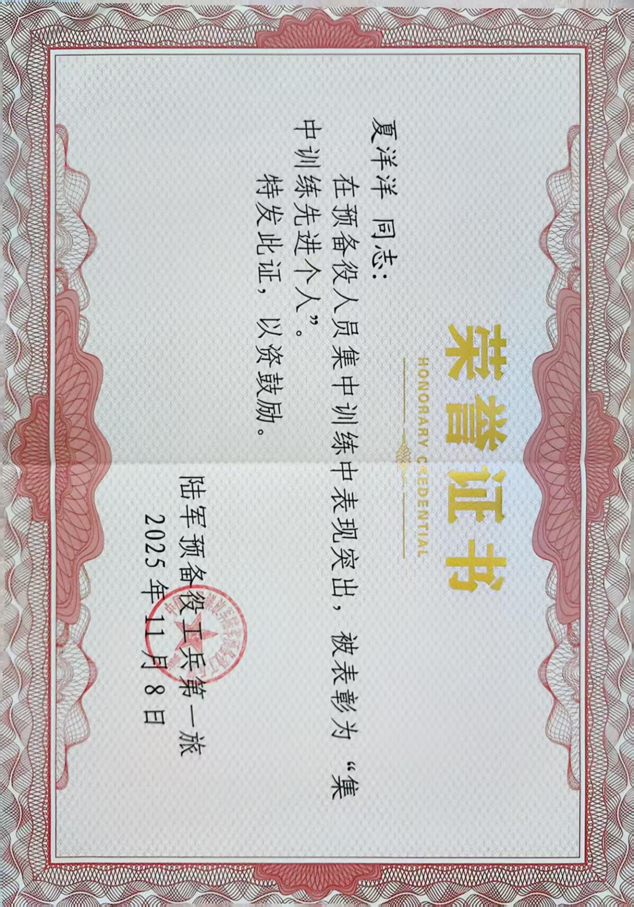 淬煉成鋼顯擔(dān)當(dāng) 實干篤行獲殊榮——公司一職工獲評預(yù)備役“集中訓(xùn)練先進(jìn)個人”