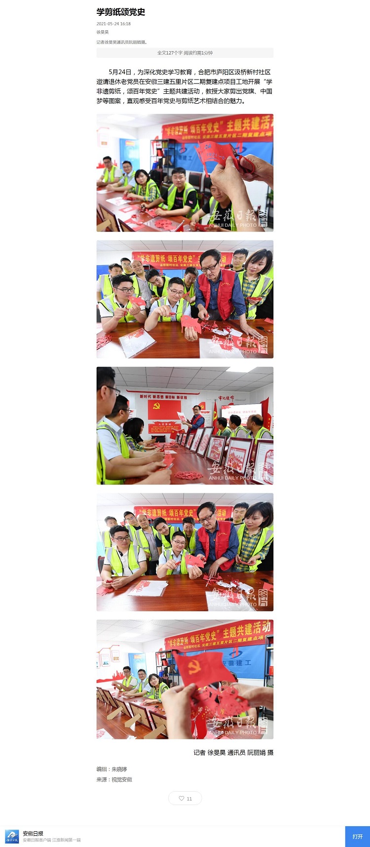 安徽日報、合肥晚報、安徽日報公眾號——學(xué)剪紙頌黨史